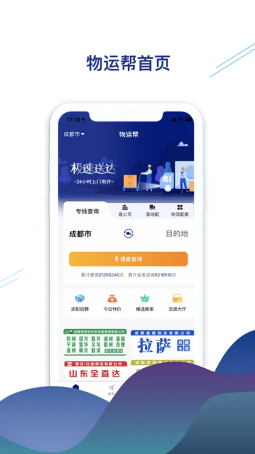 物运帮是成都见习广告传媒有限公司开发的一款专业从事物流信息展示平台,找物流发货更方便,海量专线信息轻松查询.