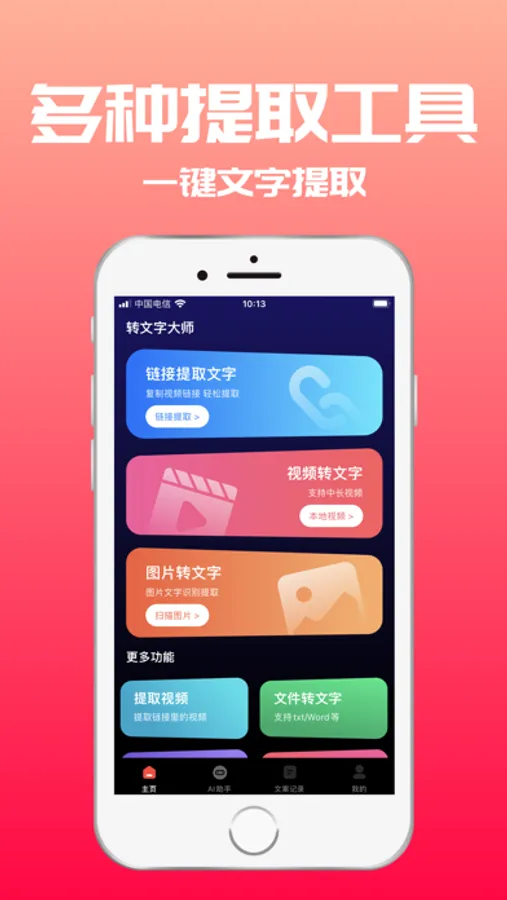 转文字大师,支持”视频转文字、链接转文字、音频转文字、图片转文字、视频链接一键获取音视频文字“等多功能于一体的一站式转文字软件,轻松且准确迅速得到您想要的文字,从而提高工作效率和便利性。无论是在日常生活中、学习中或工作中,转文字大师都能成为您的得力助手。