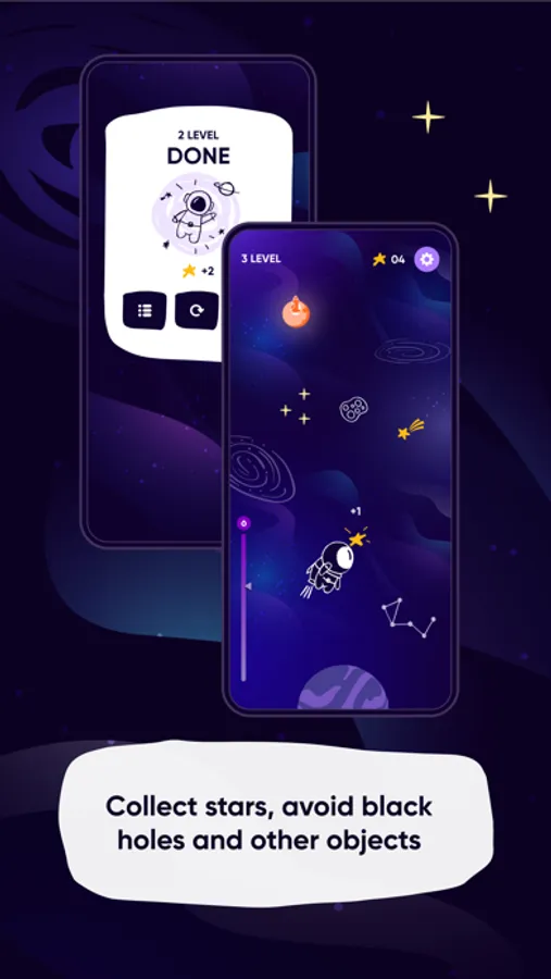Try to land an astronaut on the Moon and watch out for black holes and other moving objects in space!