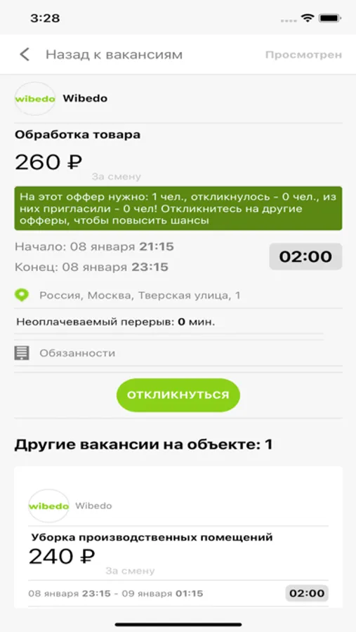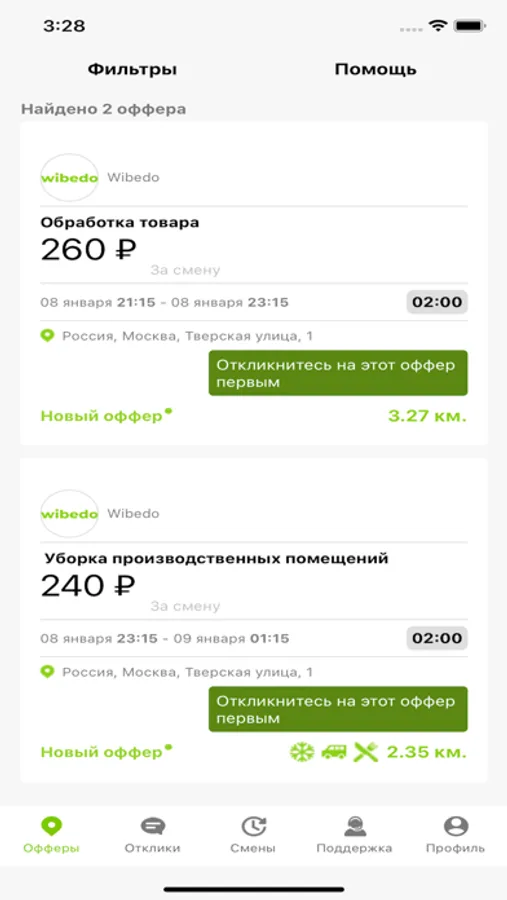 С нашим приложением, вы хозяин своего времени, решили поработать - заходите в приложение и выбирайте подходящую подработку, хотите отдохнуть - просто не откликайтесь. Круто управлять своим временем, когда есть Wibedo.