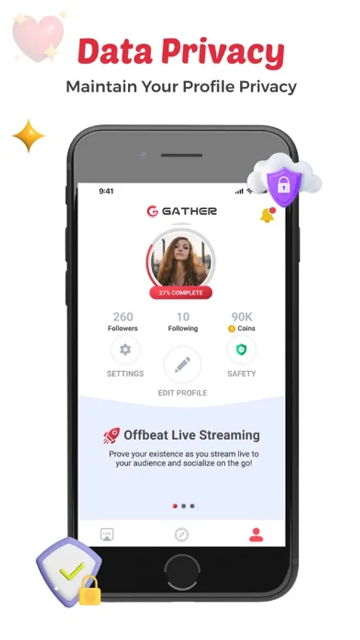 Gather high regard for the privacy of its users. For this reason, Gather has integrated security protocols and algorithms in its app. So, go Live worry-free.