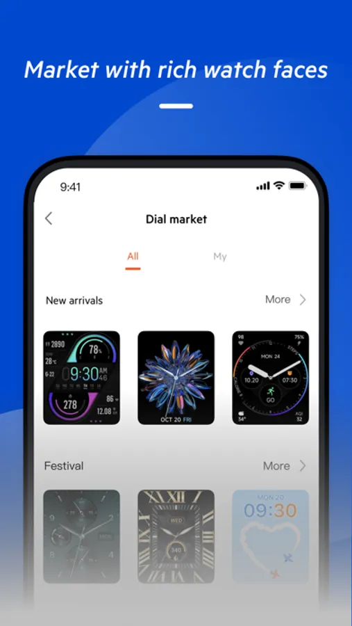 [Change Dial]: A rich selection of watch face themes are available in the brand-new cloud dial market, giving your device a new look every day;