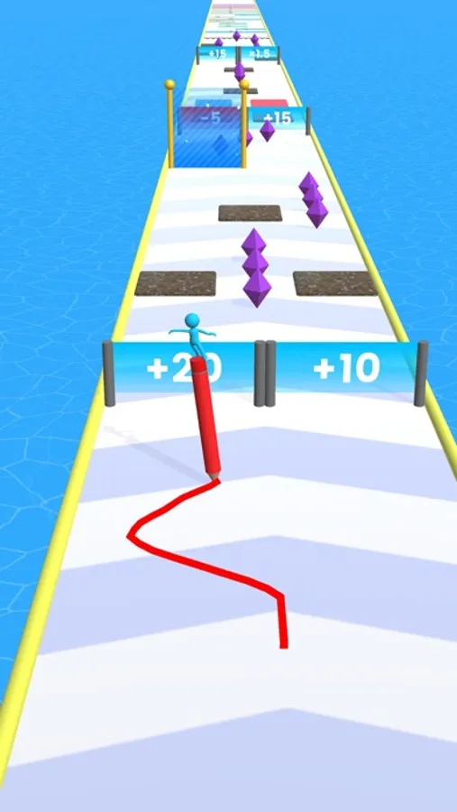 The pencil will gradually shorten, so go through the "+" and "x" gates or through the floor of the same color as the pencil to extend the pencil.