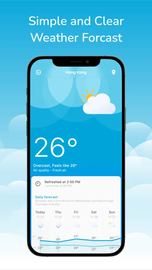A simple and clear weather forecast app. Get updated with current temperature, rain forecast, wind speed, air quality (AQI) and allergen data in a single view. No matter where you are, you can get extreme weather warnings and forecasts! Get daily local weather info and extreme weather alerts. The Weather app provides accurate reports to help you plan 15 days in advance.