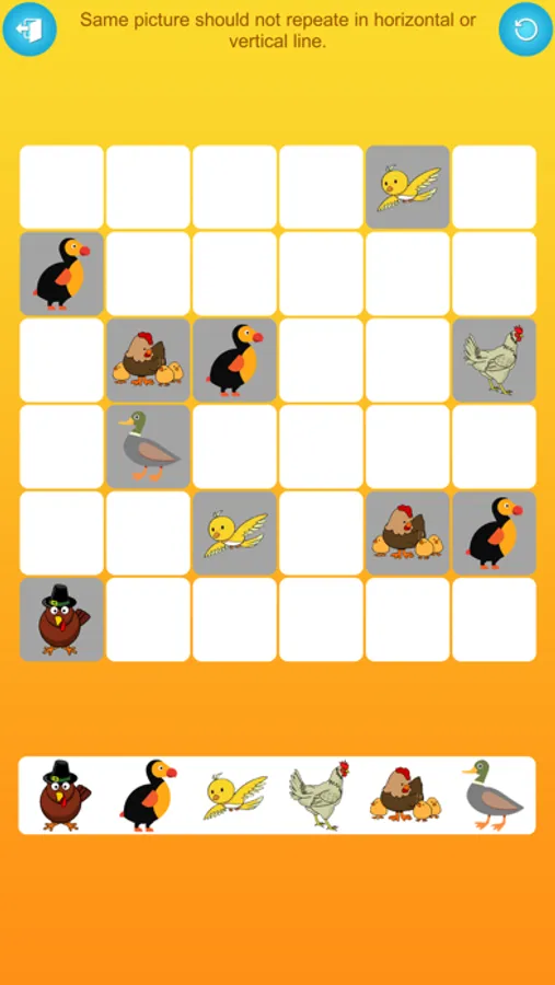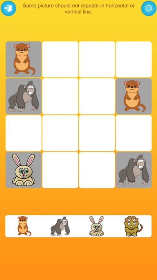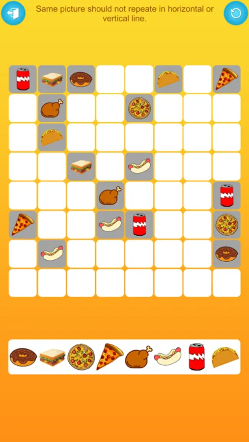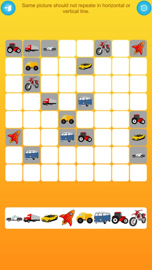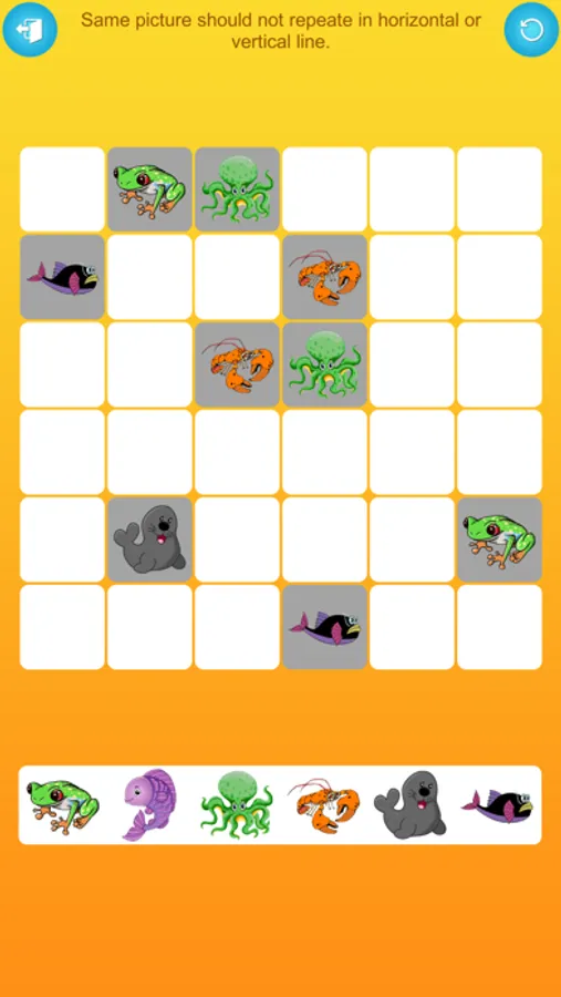 Getting started is a breeze. Your task is to arrange the pictures both horizontally and vertically on the grid. However, the same picture cannot appear in either direction. This intriguing blend of logic and creativity promises hours of entertainment and mental stimulation.