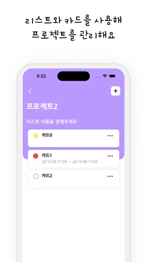 리스트와 카드를 이용해서 프로젝트를 관리할 수 있습니다.