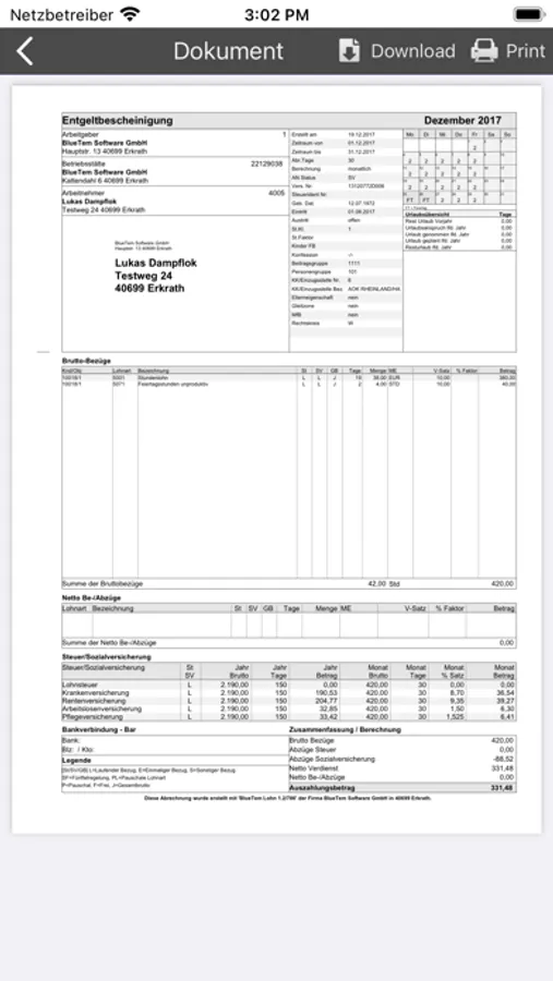 Mit dieser App 'BlueTem Lohnportal' können Sie ihre Lohnabrechnungen, digital einsehen, speichern und ausdrucken.