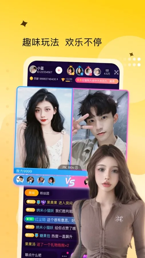 【来乐】一款专注于娱乐直播社交的24小时真人在线视频互动平台,在这里,直播、聊天、交友、短视频,各类新潮玩法带你体验不同维度的线上娱乐;您可以邂逅各种有趣的人,找到知己、同好、或者灵魂挚友;平台主打实时在线娱乐,高清视频直播,互动更真实,拒绝孤单,让您随时随地拥抱快乐!