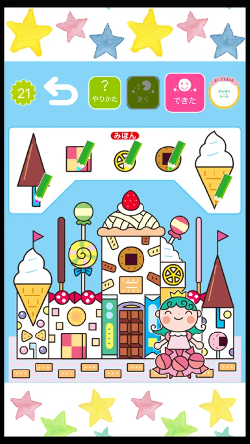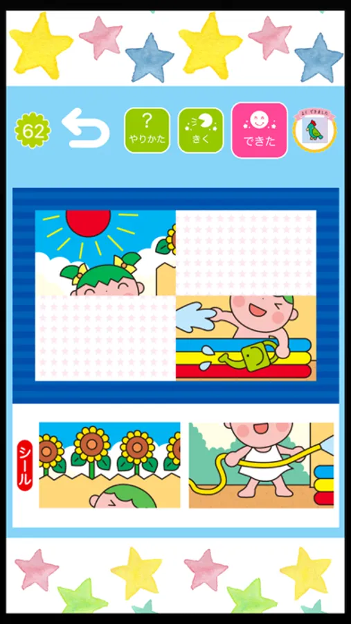 おけいこが上手に出来たら、「がんばりシール」がもらえます。シールはおけいこリストでいつでも確認できます。