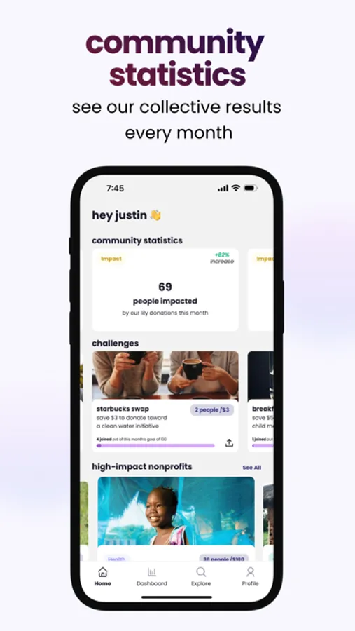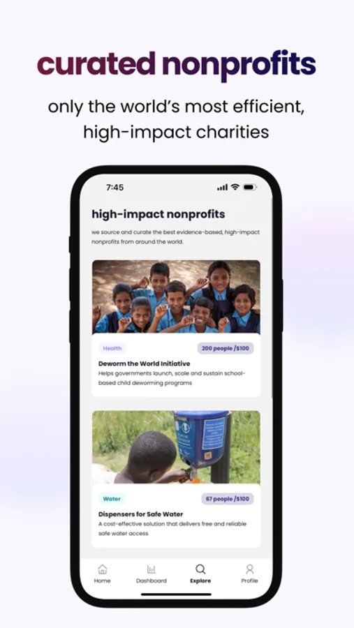 Lily identifies the world’s best charities that solve basic needs issues (hunger, health, water, education, anti-poverty), enabling you to “100x” your donation’s impact - so that even small contributions make a big impact.