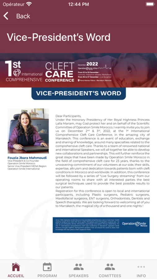 Under the Honorary Presidency of Her Royal Highness Princess Lalla Mariam, may God protect her and on behalf of the Scientific Committee of Operation Smile Morocco, I warmly invite you to join us on December 2nd & 3rd, 2022, at the 1st International Comprehensive Cleft Care Conference, in the amazing city of Marrakech.