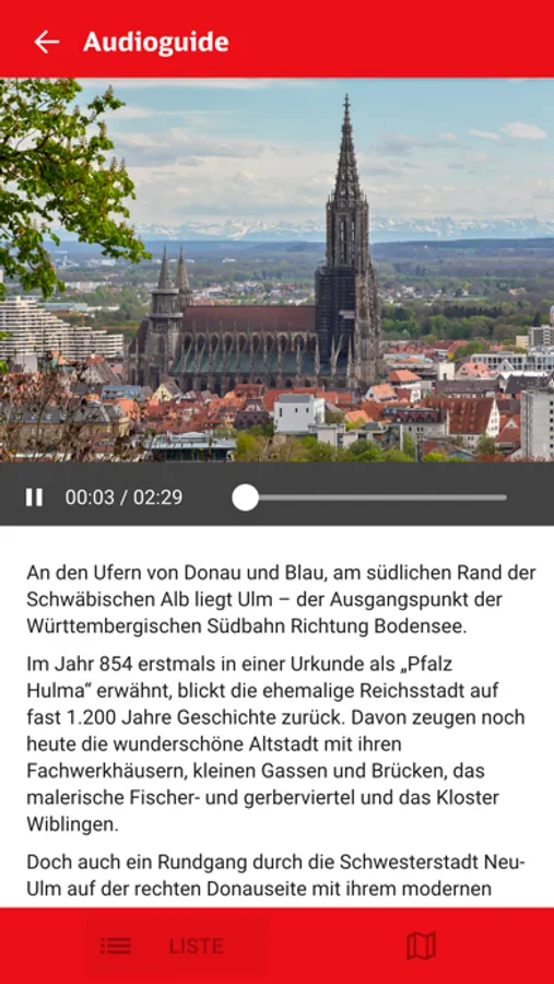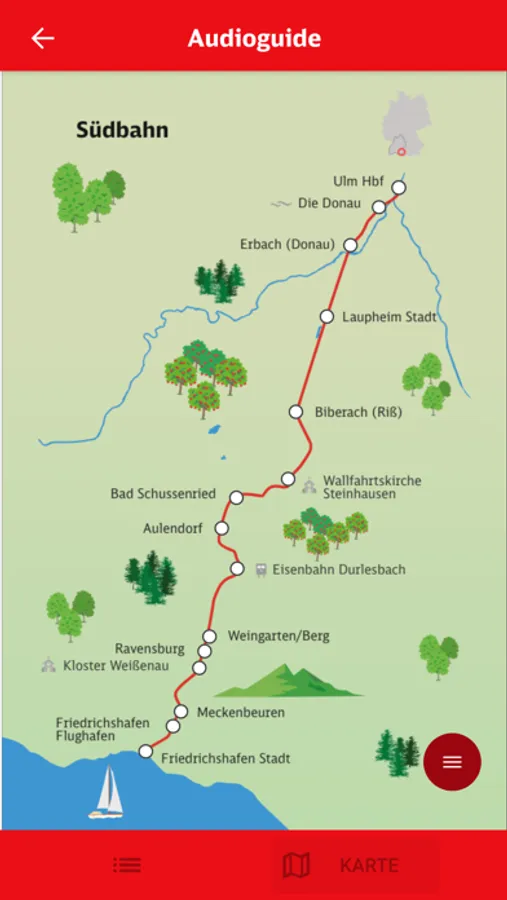 Erleben Sie noch mehr Freude beim Fahren mit dem AudioGuide der Südbahn. Alles Wissenswerte über eine der schönsten Bahnstrecken Deutschlands sowie zu den Sehenswürdigkeiten entlang der Strecke gibt es jetzt auch zum Hören. Die App beinhaltet zudem eindrucksvolle Abbildungen sowie eine GPS-Verortung auf offline Kartenmaterial.
