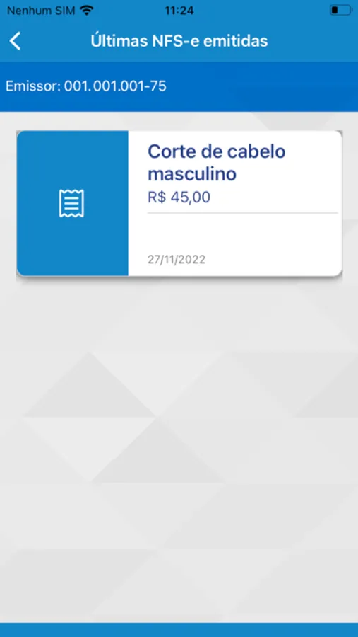 O APP também permite que o usuário consulte as NFS-e emitidas mais recentemente pelo prestador de serviço por meio do acesso à funcionalidade “NFS-e emitidas”.