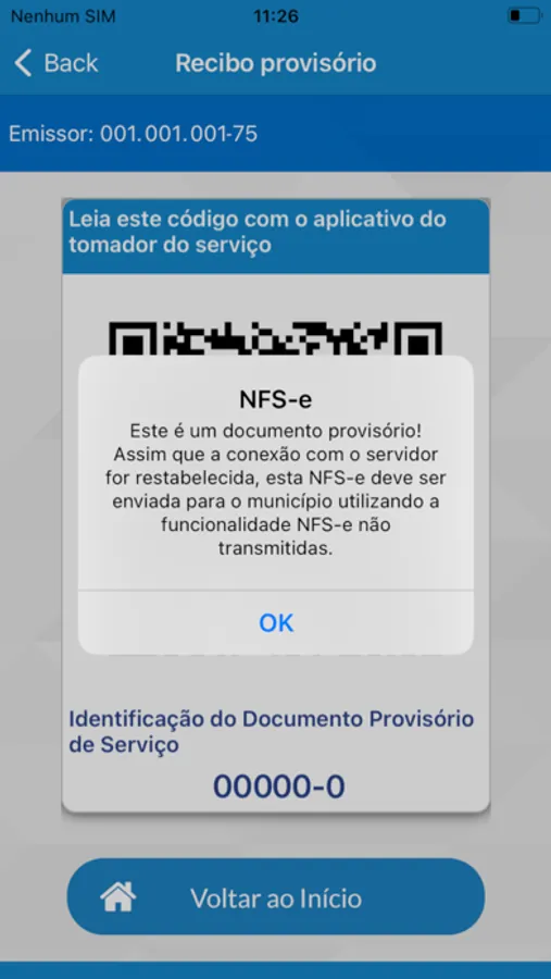 Caso o aparelho não esteja conectado à internet no momento de sua geração, o documento é salvo automaticamente na opção “NFS-e Não Transmitidas” e pode ser transmitido posteriormente. Esta funcionalidade gera um QR code que pode ser lido por meio de celular pelo tomador do serviço.