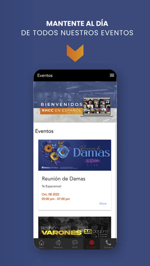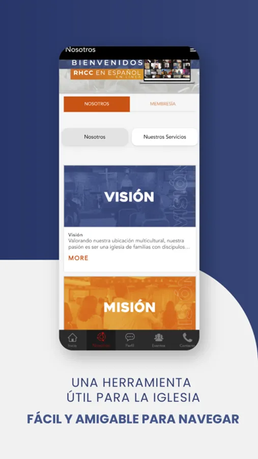 * Ver e interactuar con los eventos y ministerios.