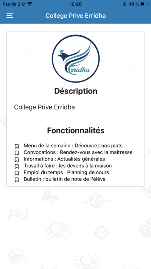 College Prive Erridha Application vous permet de rester en contact avec l'actualités dans le collège. Elle est un pas en avant pour les parents pour suivre leurs enfants d'une manière inédite et avec les dernières méthodes possibles.