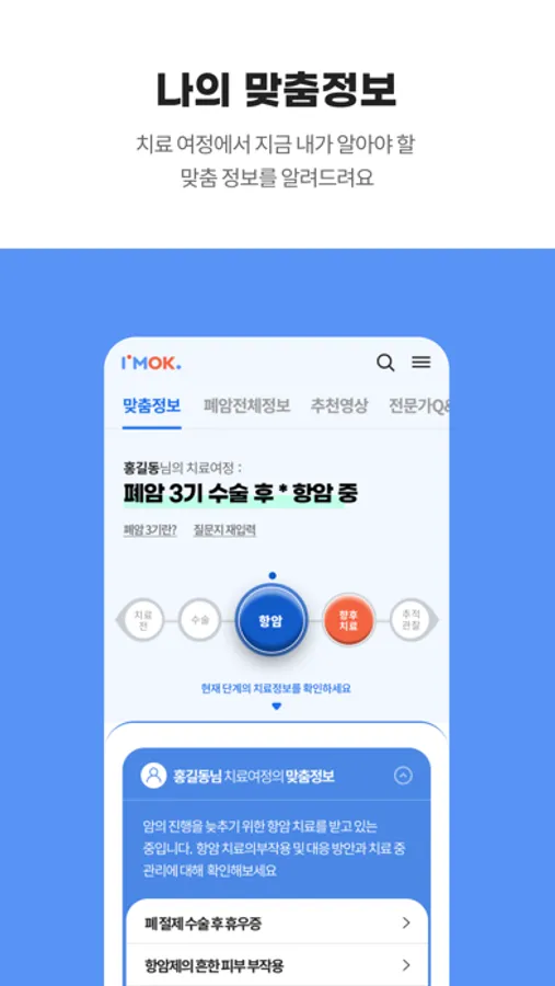 ‘암오케이’는 맞춤 ‘암정보’를 제공합니다.