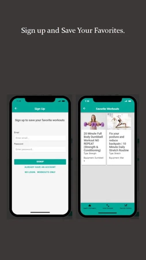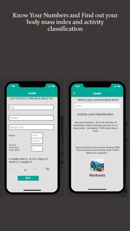 Healthy Me is an app that provides health data, nutritional information, and workouts. The app provides a know your numbers section for body mass index, resting metabolic rate, total daily calories burned, and activity classification to help you know where you are on your health journey. Choose a nutrition topic or workout of interest. There are workouts for all levels from beginner to advanced. No login required for workouts or sign up and save your favorites to access anytime.