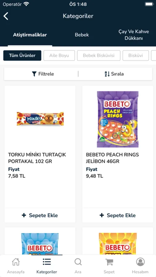 * Ürün kategorilerinde filtreleme yapabilirsiniz.