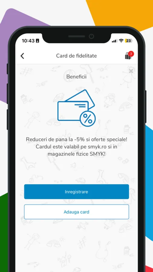 Card de Fidelitate - profita de beneficii suplimentare, promotii si oferta de produse disponibila doar pentru posesorii cardului de fidelitate SMYK. Datorita aplicatiei ai acces constant la cardul de fidelitate SMYK.