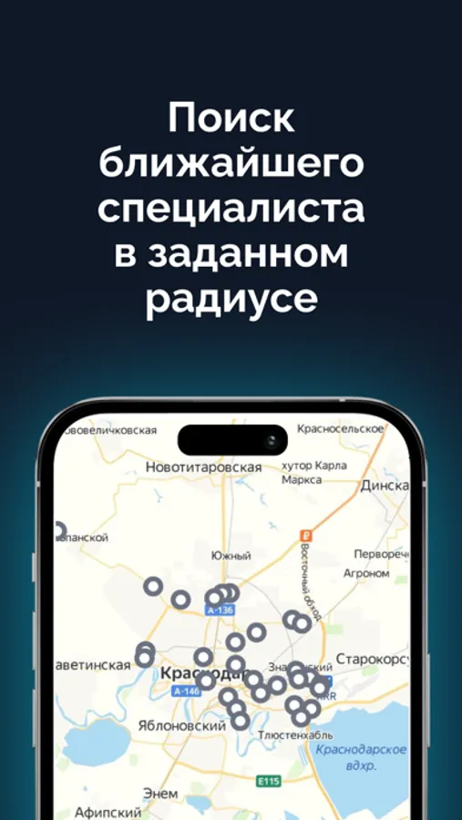 - размещать точку на карте с контактами и перечнем брендов и типов техники, с которыми они работают;