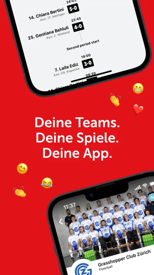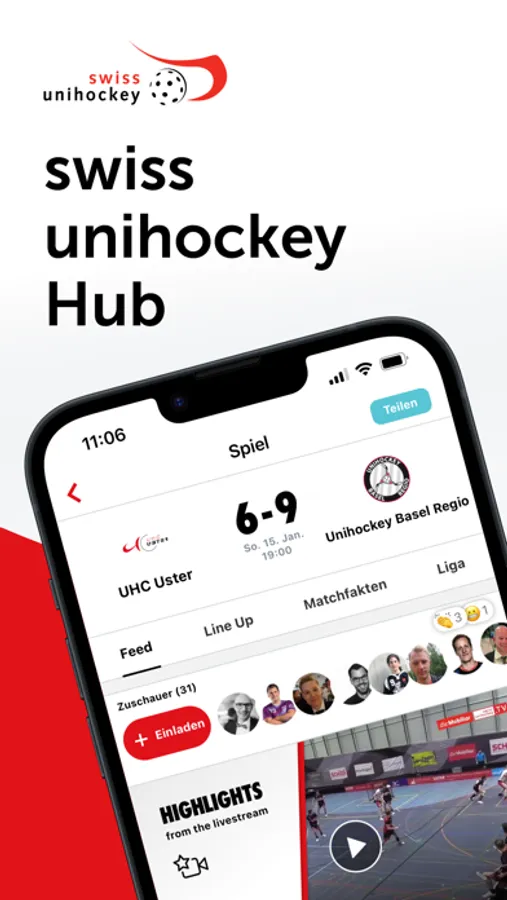 Dies ist die neue App von swiss unihockey. Hier kannst du deine Teams und ihre Spiele live mitverfolgen und verpasst keinen Moment mehr.