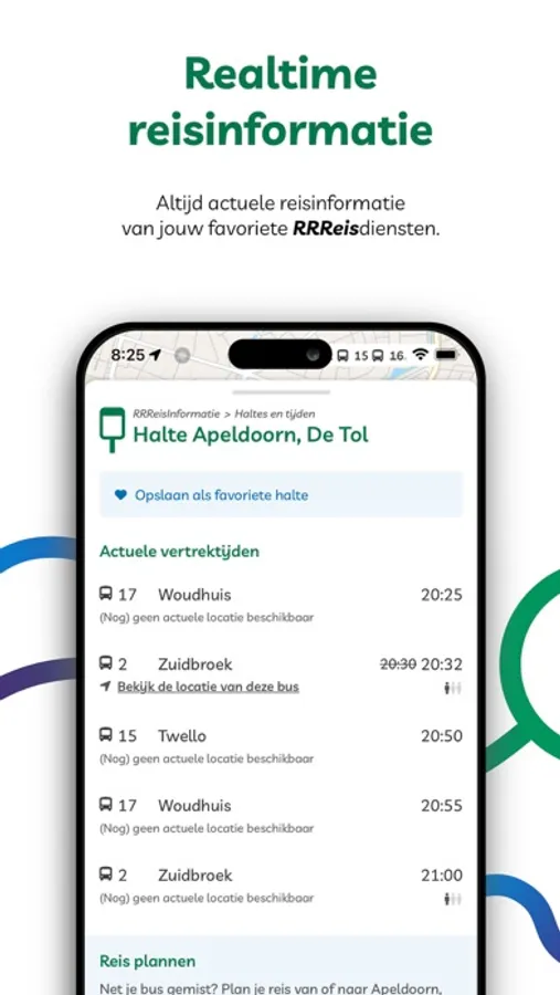 De nieuwe RRReis app waarin je kan plannen en boeken handig in één app. Bekijk de actuele vertrektijden van je favoriete halte, de locatie van je bus en de drukte indicator. Gaat er iets mis of heb je hulp nodig, neem dan direct contact op met onze klantenservice.