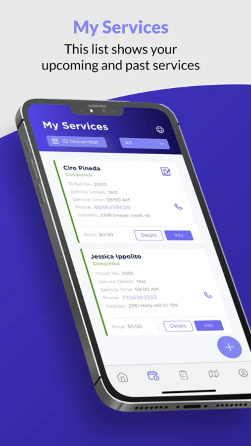 Find services: all, pending and completed services are shown in one page. Follow your work, simply edit or add customer information.