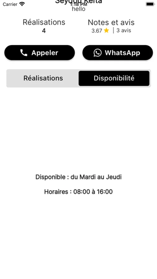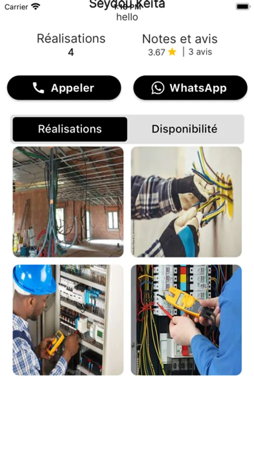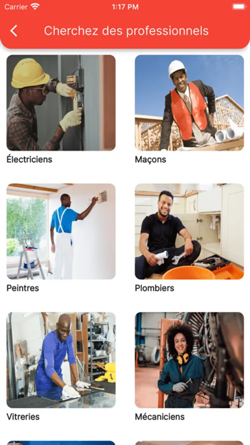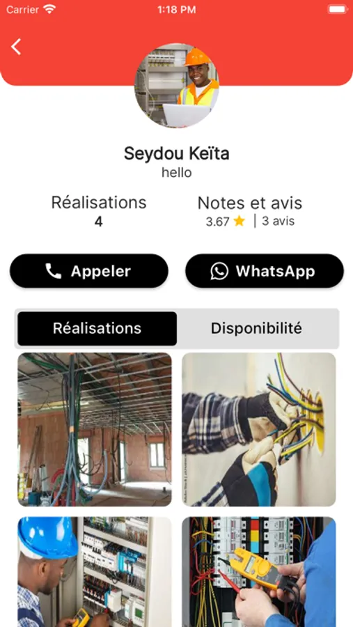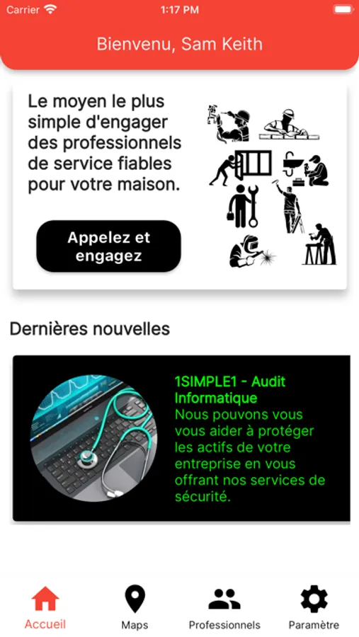 Une application qui vous permet de trouver les meilleurs professionnels avec 1SIMPLE1 près de chez soi et de les contacter. Plombiers, Électriciens, Mécaniciens, Soudeurs, … (type de métiers) une liste autour de vous s’affiche avec notes et commentaires des clients.