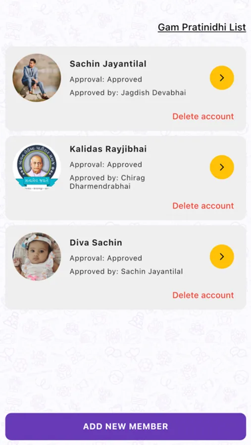Welcome to this application. This app will help our community to find all members from 52 Patidar Samaj. Make your own account to this help so that you can handle your own profile, update your profile from time to time. We search for anyone with a name, village name, city. Also, we can search his/her family persons.