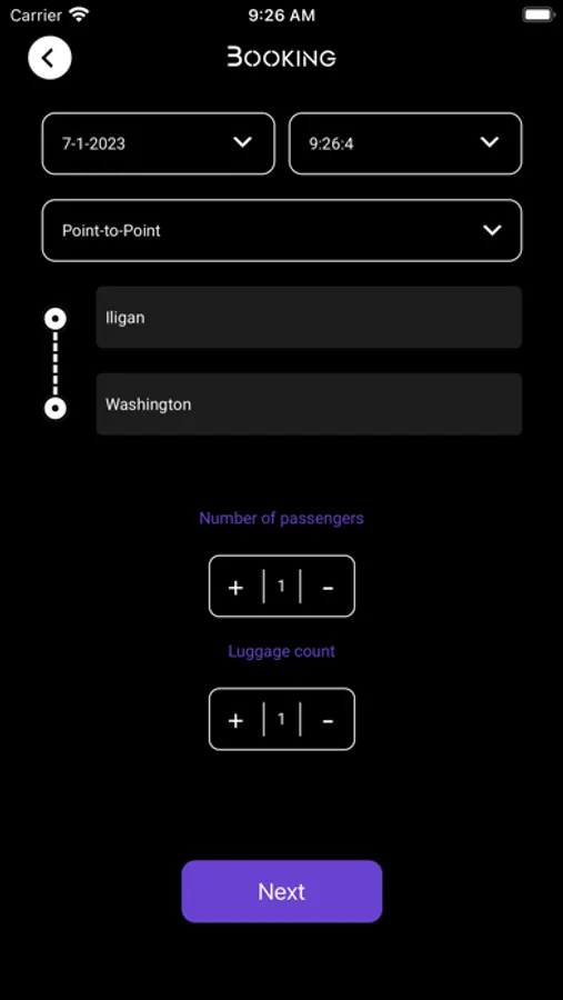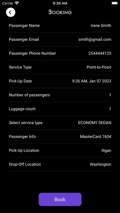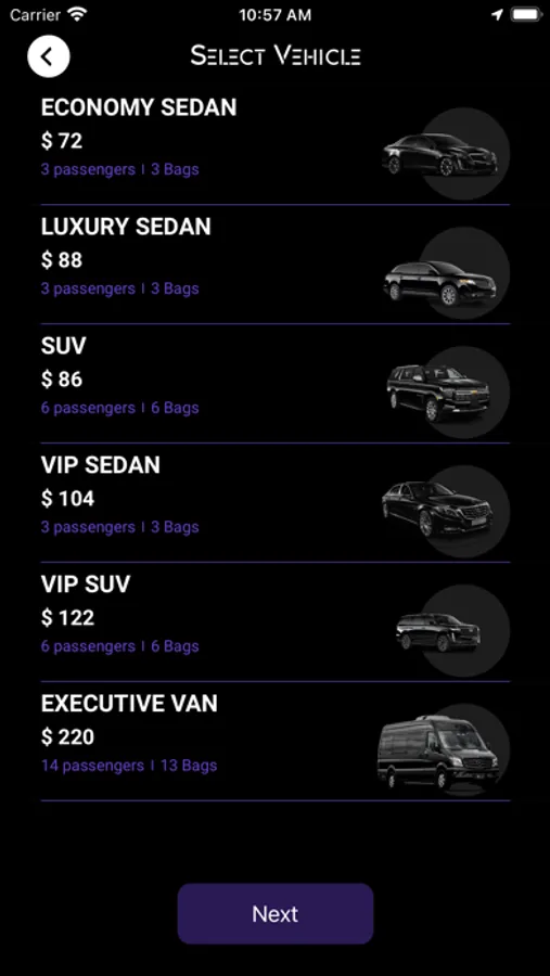 Our application allows user to make fast and easy bookings for different black car vehicles (Sedans, SUV, Stretch or Executive Van) at the time and date of their choosing.
