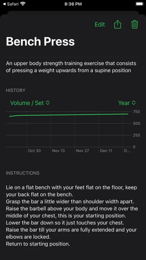 - It’s easy to add custom exercises, as well as specify advanced details such as muscles worked and equipment required