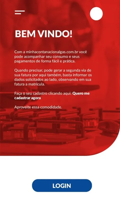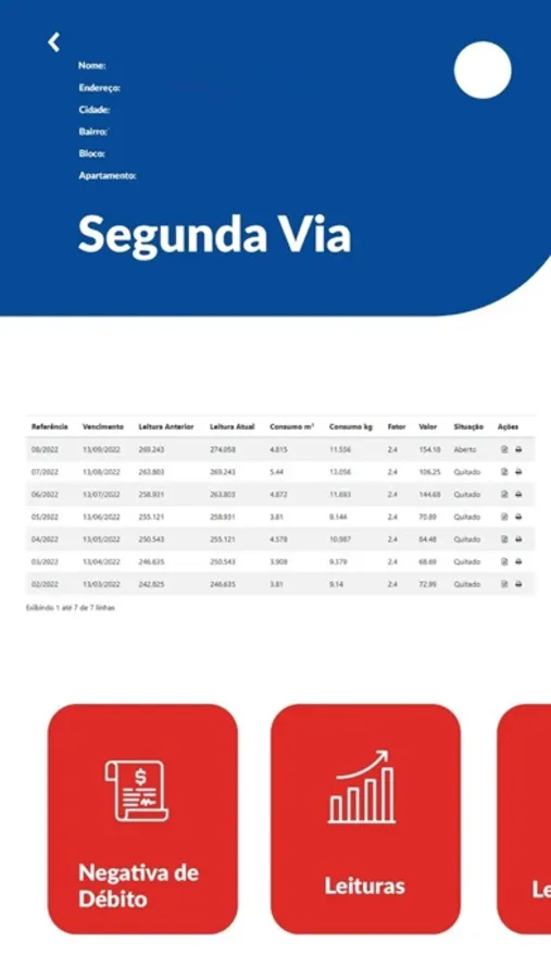 Aplicativo direcionado aos clientes consumidores de gás. O login é feito na página principal com CPF e n° da matrícula, acessando a próxima página, já dentro do ambiente do cliente, terão as funcionalidades de retirada de segunda via, certidão negativa de débitos e histórico de consumo. Na retirada de segunda via o usuário clica na imagem correspondente ao mês de vencimento e uma vez aberta o cliente pode imprimir, copiar o código de barra e/ou enviar o arquivo para Whatsapp ou e-mail. A opção de certidão negativa, quando o cliente está adimplente, o sistema disponibiliza uma certidão negativa de débitos e na opção "LEITURAS" o usuário tem acesso ao gráfico de consumo, tendo o "ANO" como o único filtro.
