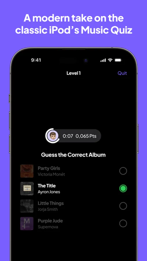 SongCapsule Quiz is a fun and modern take on the classic iPod’s Music Quiz, where you can explore playlists, test your music knowledge, and discover new songs while playing.