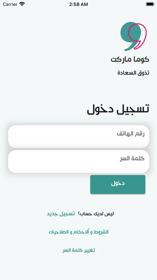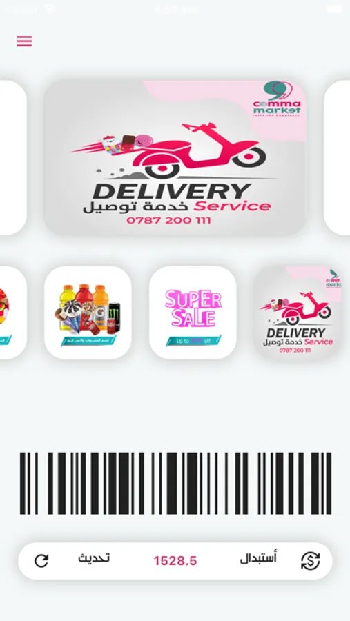 تطبيق كوما ماركت هو تطبيق استبدال نقاط يتيح لزبائننا الكرام و المميزين استبدال نقاطهم المجمعه من التسوق لدى كوما ماركت بهدايا حسب طلبهم, و يتم تجميع النقاط حسب المشتريات و حساب كل النقاط و اتاحتها مقابل الهدية المطلوبة