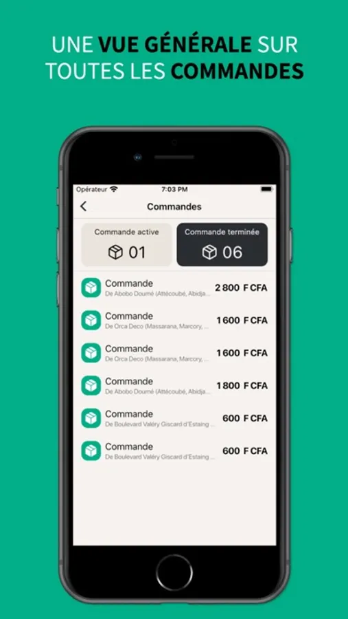 En plus de cela, Envoy Driver offre un historique de commandes complet qui permet aux livreurs de voir toutes les commandes qu'ils ont effectuées, y compris les détails de la commande et le montant de la commission. Cette fonctionnalité permet aux livreurs de suivre leur productivité et de prendre des décisions éclairées sur leur travail futur.
