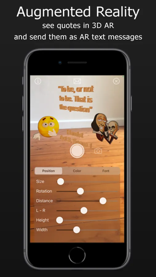 New: Send quotes as AR text messages to any iPhone or iPad user. And attach AR emojis. Message recipients do *not* need to have the app.