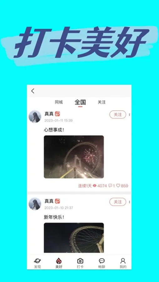 无论你是开心还是悲伤,忙碌还是无聊,随时随地随手拍照打卡,记录当下的美好瞬间,分享生活中的点点滴滴,认识更多有趣的朋友。
