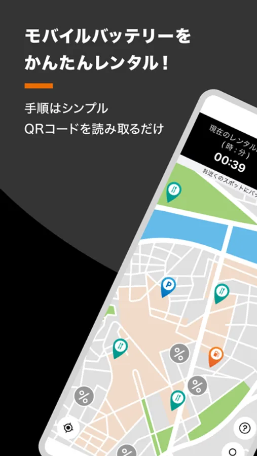 レンタルをする時はアプリを使ってバッテリーステーションを探し、見つけたらQR
