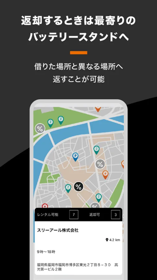 ※バッテリーステーションの空き状況などにより、レンタルまたは返却が出来ない場
