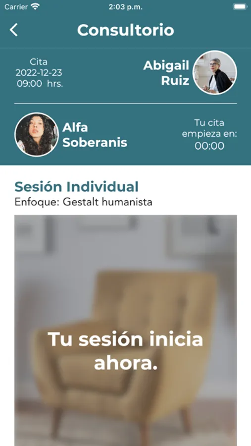 Iniciarás un proceso para lograr tu bienestar integral, acompañado de profesionales de la salud en psicoterapia y nutrición acreditados con título y cédula profesional, navegarás en un ambiente digital amigable en donde tus datos personales estarán encriptados, tus conversaciones cifradas, y tus pagos se mantendrán protegidos. Tendrás acceso a sesiones con profesionales de la salud, en sus consultorios virtuales con funciones de videollamada y chat, asimismo, podrás consultar información relevante que cada profesional publicará en dicho consultorio.
