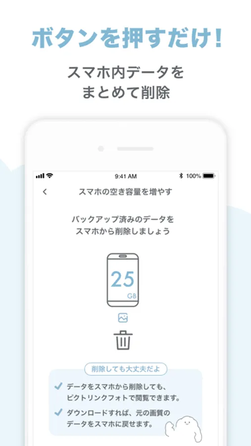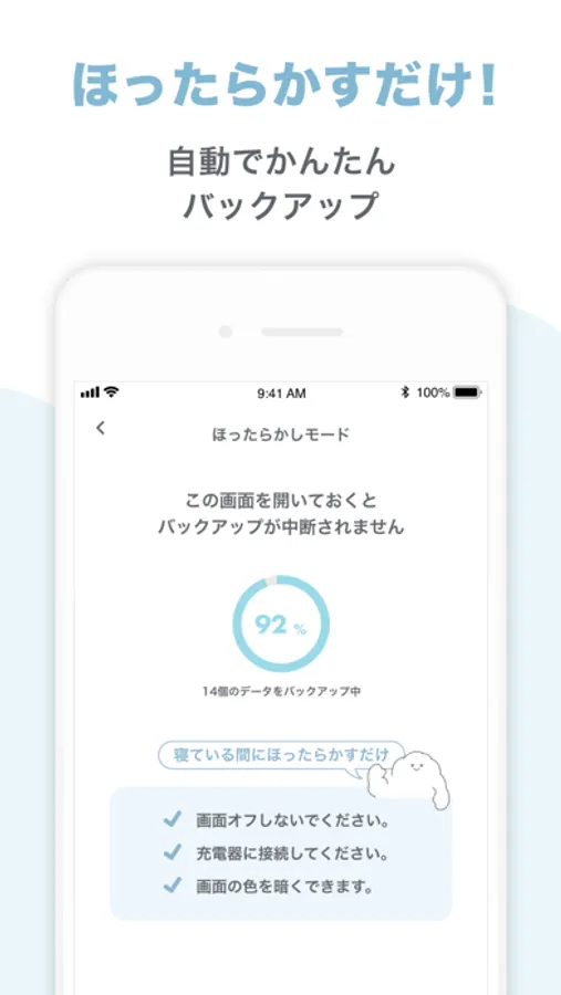 スマホをほったらかすだけだから、自動でかんたんバックアップ完了!