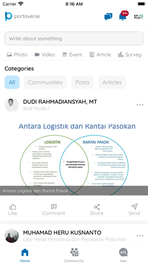 Presented as a multifunctional application, Portaverse is now available on the mobile platform. As a Software as a Service (SaaS), Portaverse provides features for Pelindo partners to actually handle, manage, and realize knowledge. Strategically, the Portaverse application will support Knowledge Management System, Training Management (Learning Management System), and Talent Management System.
