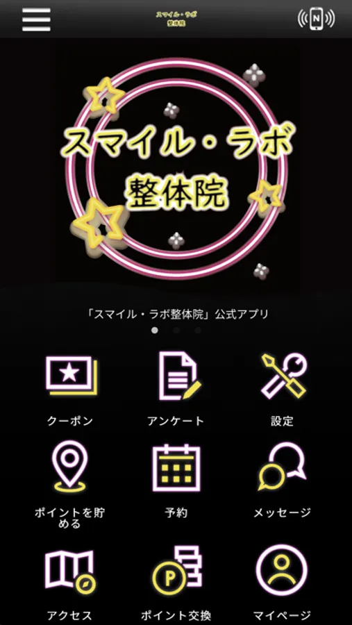 このアプリでは、スマイルラボの最新情報の受け取りや便利な機能を使う事ができます。