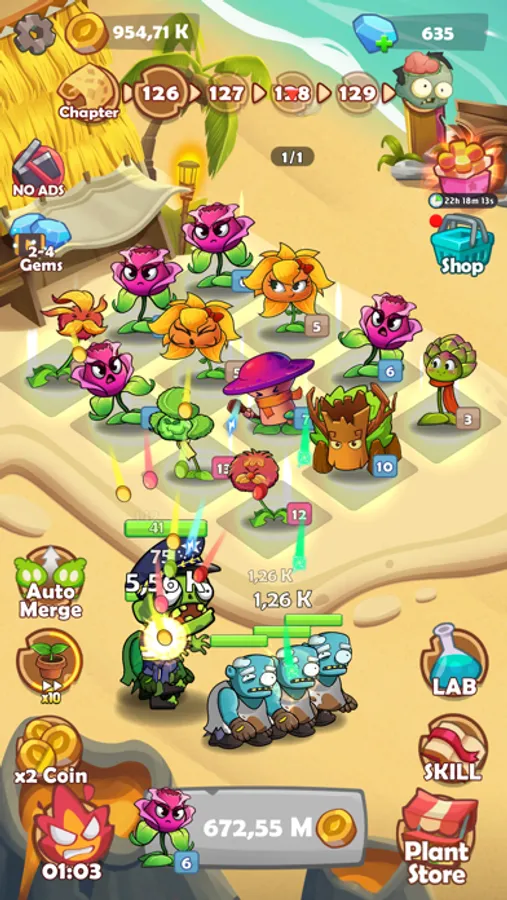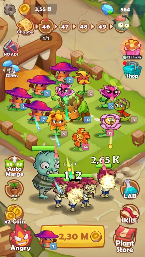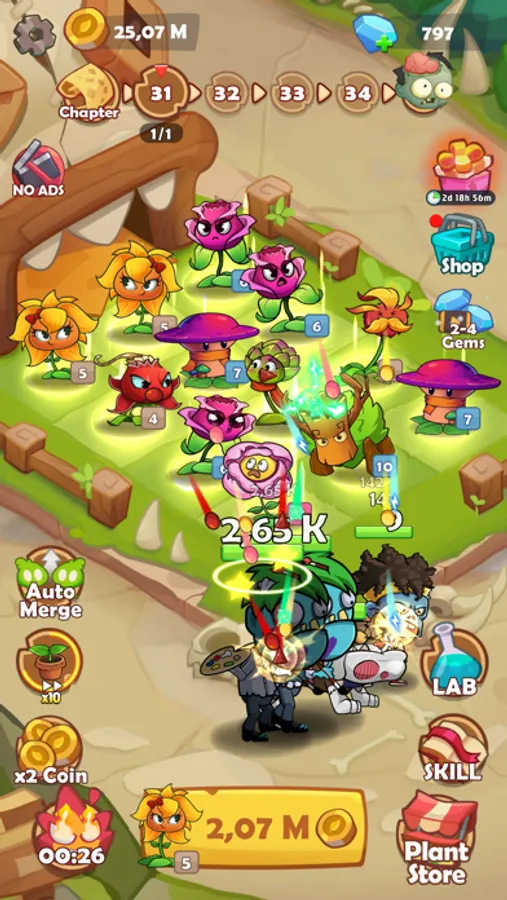 The poor farm is really in dire need of your help. So, your mission right now is to grow and merge plants in order to create a hero team to stop the zombies from invading your peaceful village.