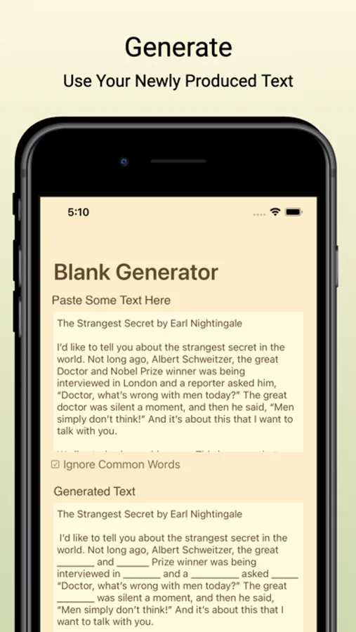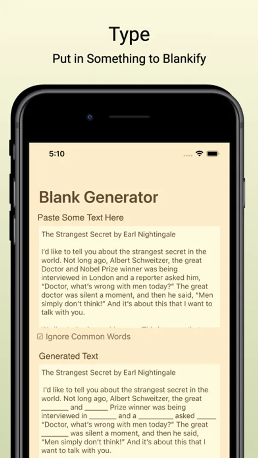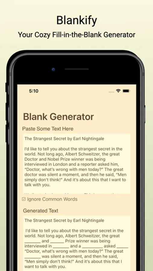 Blankify is the app that will save your time and sanity. With just a few taps, you can automatically generate fill-in-the-blank text from anything you input. It's really easy to use and it's completely free!