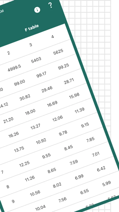 "F table" application is developed to provide easy and accurate information to users. You can find all F critical values on a single app and easy to use table.