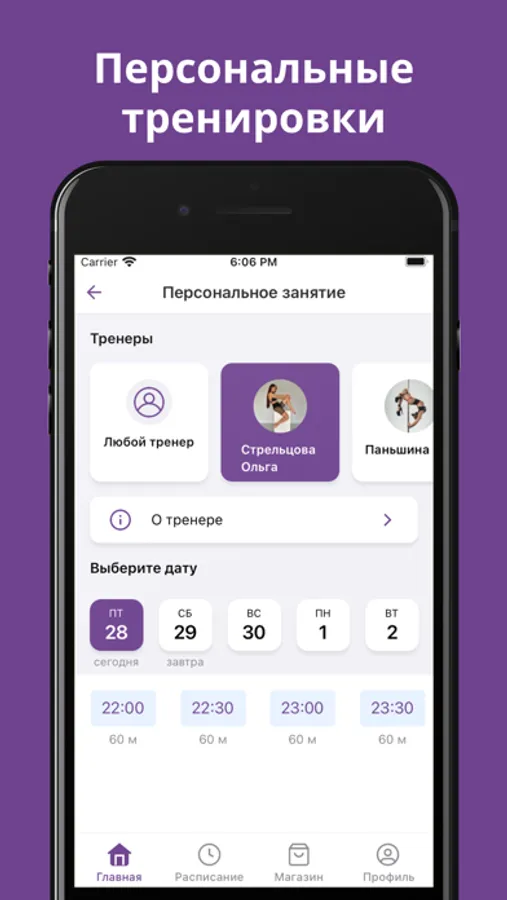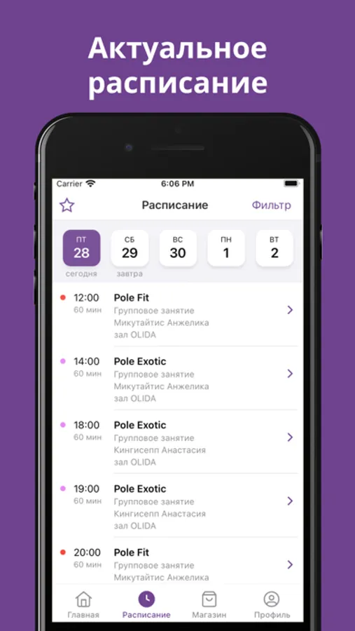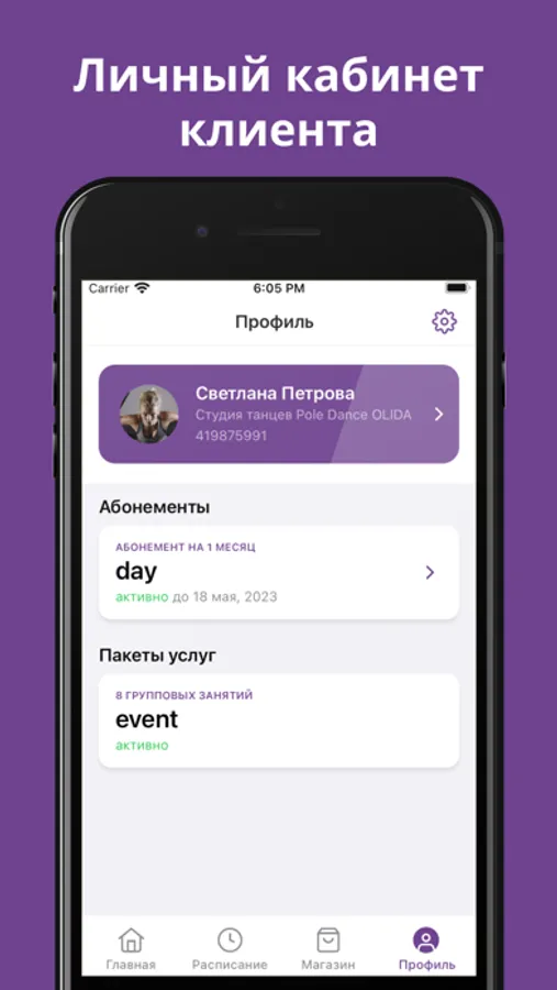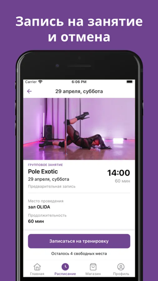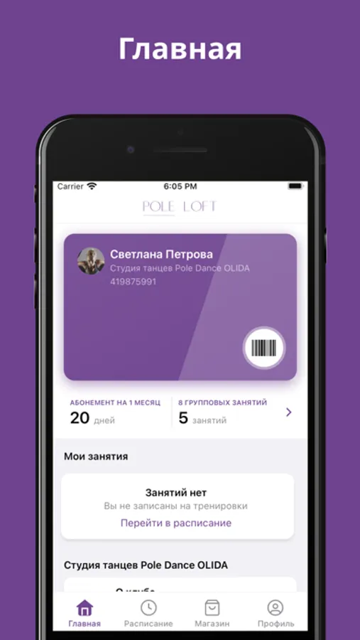 Приложения для клиентов студии танцев на пилоне и растяжки Pole Loft