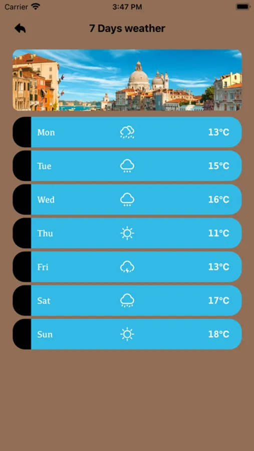 Travel with friends when the weather is nice. The app lets you check weather conditions in Italian cities.