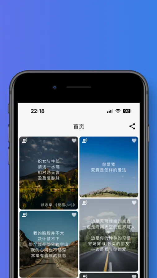 「浪漫诗人」是一个诗歌阅读应用,里面展示了很多浪漫,有趣的诗歌卡片,欣赏和阅读,让你的生活增添色彩